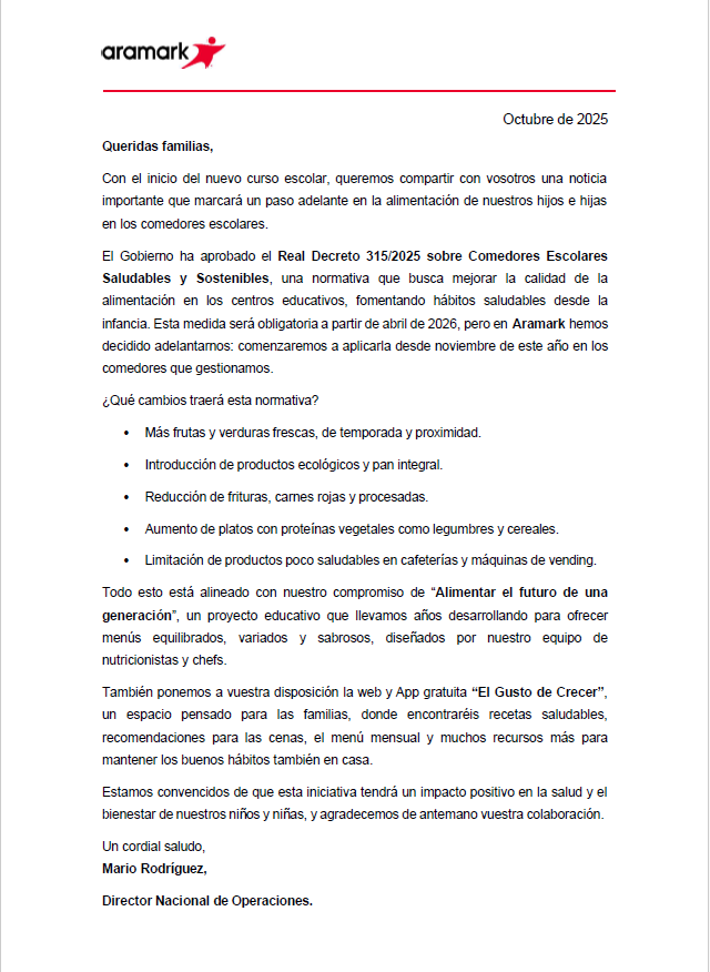 Información para las familias sobre las ayudas de comedor escolar 2025/2026